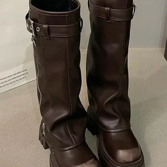 Get ready to take your fall wardrobe to new heights! 🍂 These knee-high platform boots turn every sidewalk into your personal runway. Whether you're enjoying a cozy coffee or conquering the world, each step exudes style and confidence. These boots are as bold as your attitude. 😎