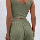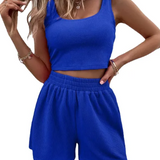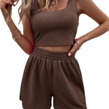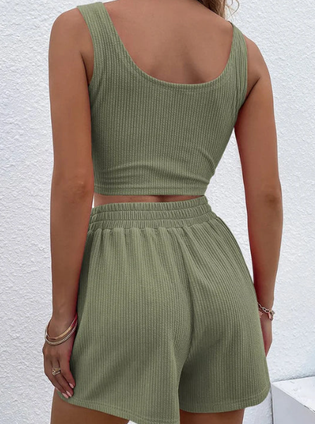 This knitted summer set is ideal for warm days. The set is made from high-quality, breathable knit material, ensuring optimal comfort and ventilation. With its summery design and perfect fit, it is an essential piece for every fashion enthusiast. Enjoy the summer in this stylish ensemble.