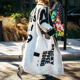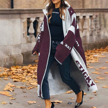Unleash your inner fashionista with this effortlessly chic, monochrome, textured long coat. The distinctive black-and-white color scheme creates a striking contrast that is both eye-catching and versatile. Embedded letters and numerical motifs in the texture add an edgy touch to the timeless design.