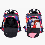 The standout features of the ladies' anti-theft backpack include hidden zippers, secret pockets, as well as cut- and water-resistant materials.