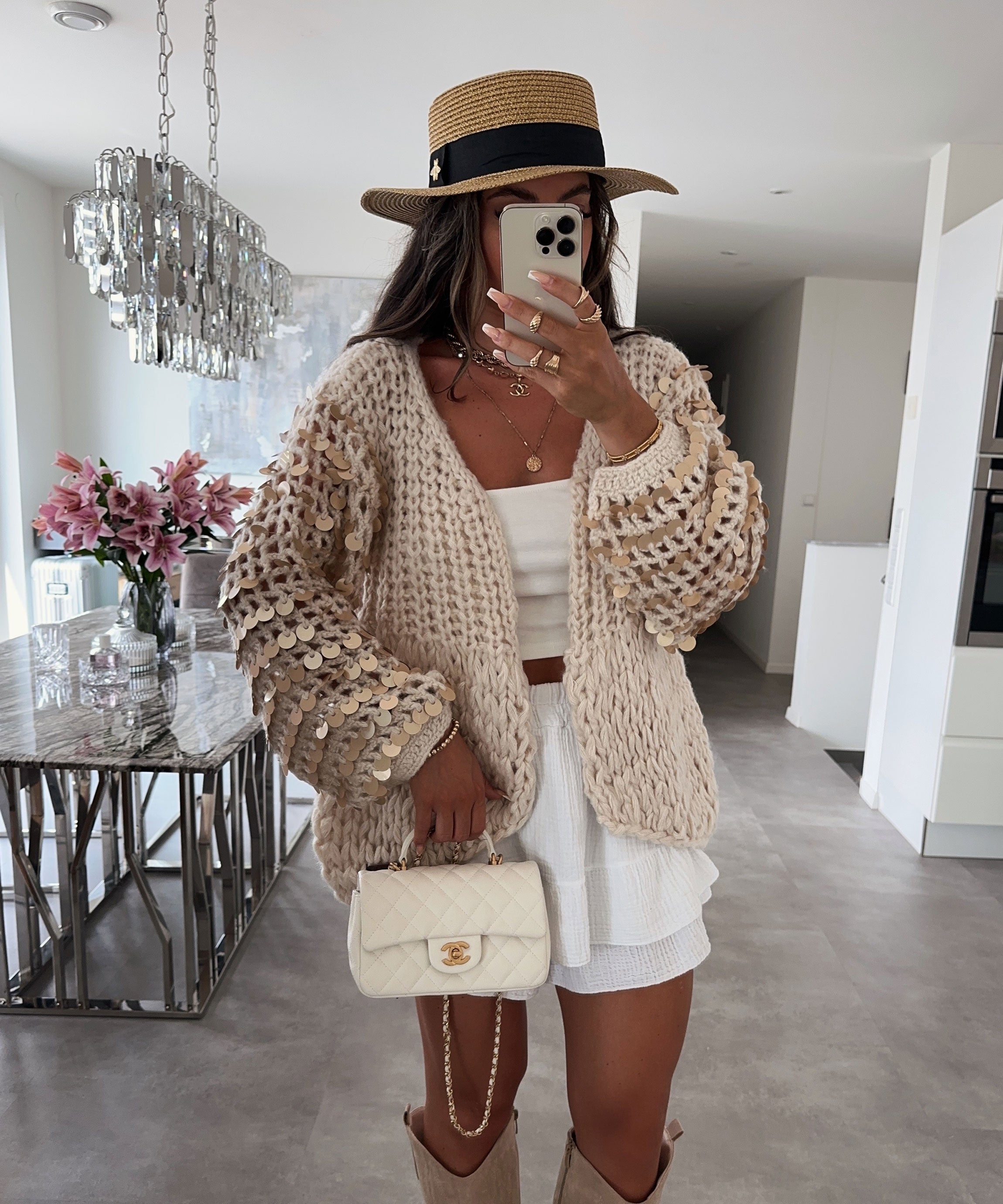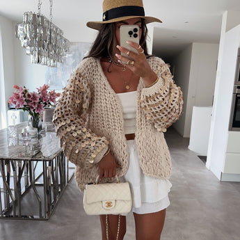 Beautifully handcrafted knitted cardigan. Made from an exceptionally soft fabric. Suitable for sizes ranging from XS to XL. The model is 1.65m tall.