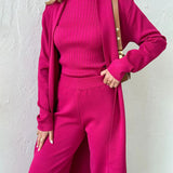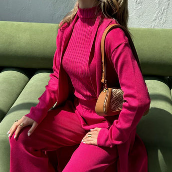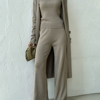 👗 Stylish Ensemble: This three-piece outfit features fashionable trousers, a chic cardigan, and a sophisticated top – the ideal mix for making a stylish impression.