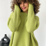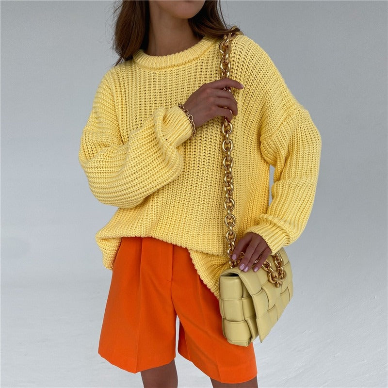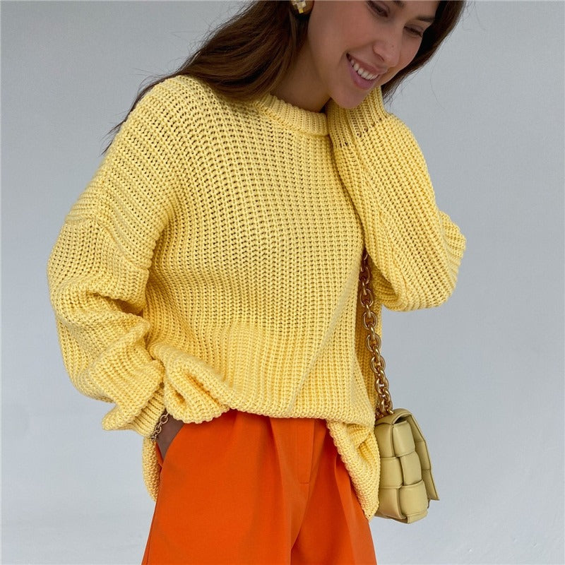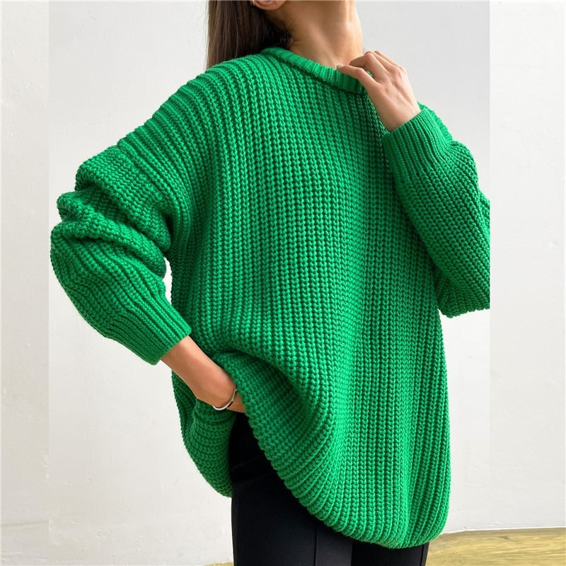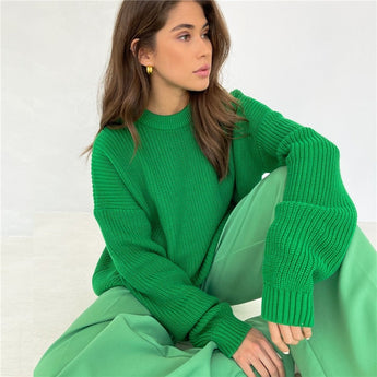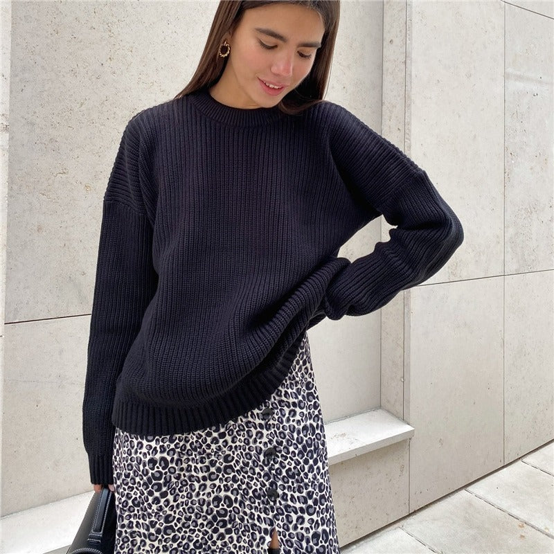 The design offers ample freedom of movement and a relaxed fit. The soft knit fabric gently caresses the skin, providing soothing warmth on cooler days. With its simple and classic appearance, this sweater pairs effortlessly with leggings, jeans, or skirts, creating countless styling possibilities.