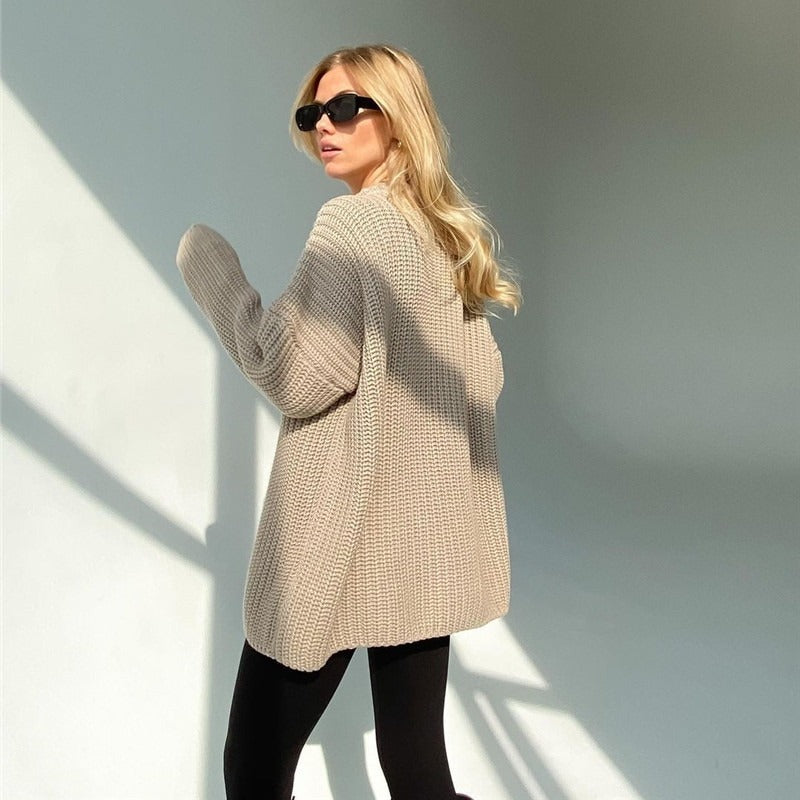 Add a touch of elegance and comfort to your everyday look with our oversized knit sweater. This sweater is more than just an article of clothing; it represents both comfort and style.