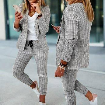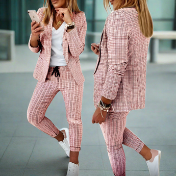 Elevate your casual work attire with the ideal blend of comfort and sophistication. Our contemporary, chic textured blazer set is designed for the modern woman who values both fashion and functionality. This two-piece ensemble features a luxuriously soft, finely textured blazer with a tailored silhouette and matching jogger pants with a drawstring, creating a perfect balance between professional allure and relaxed ease.