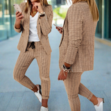 Crafted from a cozy fabric that moves with you, the blazer showcases classic lapels, a single-button closure, and functional flap pockets for your essentials, while the jogger pants offer a relaxed fit with a tapered leg that pairs beautifully with everything from white sneakers to heels. Whether you're powering through meetings or enjoying a weekend brunch, this set transitions seamlessly from the office to dinner, making it a versatile addition to your wardrobe.