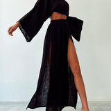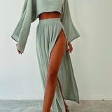 Elevate your wardrobe with the Avencea two-piece set, a chic and comfortable ensemble that seamlessly blends modern fashion with classic comfort. This set is perfect for spring, summer, and autumn, featuring a breathable cotton-linen blend that is ideal for transitional weather. The subtle slit adds a trendy and playful touch, making it suitable for both casual and elegant occasions.