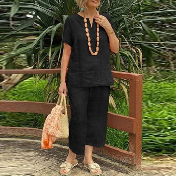 The Avencea Summer Set is crafted from a premium cotton-linen blend, ensuring exceptional comfort and breathability. This outfit features a relaxed fit and a timeless design, making it an essential addition to any wardrobe. Whether you're running errands or enjoying brunch with friends, the Avencea set offers effortless style and versatility for everyday wear. This chic and functional ensemble is perfect for the laid-back summer vibe.