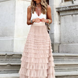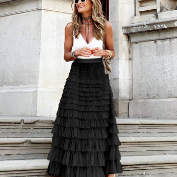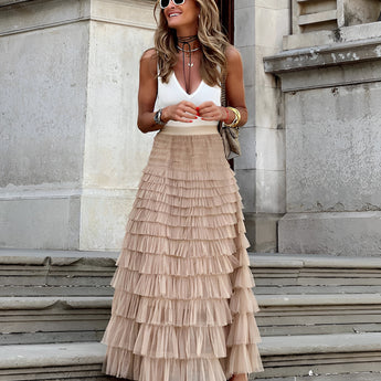 Introducing the Beige Ruffle Skirt, a glamorous summer fashion essential that effortlessly combines timeless elegance with modern style. This versatile skirt, known as the Averie, is crafted from high-quality fabric, ensuring both comfort and sophistication. Its flattering cut and unique design details make it perfect for any occasion, seamlessly transitioning from day to night. Available in a range of sizes from S to 2XL, and in a variety of colors including White, Persimmon, Pink, Persimmon 1, and Black, this skirt caters to diverse fashion preferences. The Averie skirt features a layered tulle maxi design, adding a touch of feminine charm to your wardrobe. The size chart provides detailed measurements in centimeters, ensuring a perfect fit: Size S with a waist of 60-68 cm and length of 89 cm, Size M with a waist of 62-72 cm and length of 90 cm, Size L with a waist of 64-76 cm and length of 91 cm, Size XL with a waist of 66-80 cm and length of 92 cm, and Size 2XL with a waist of 68-84 cm and length of 93 cm. For those unsure about sizing, it is recommended to choose one size larger. Please note that due to different screens and lighting effects, the actual color of the item may slightly differ from the photos. Embrace your feminine charm with the Averie skirt, an essential piece that promises to elevate your style with its elegant and modern appeal.