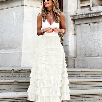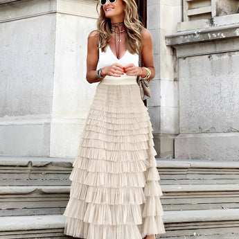| 1 - Beige Ruffle Skirt - Glamorous Summer Fashion Essential | |