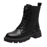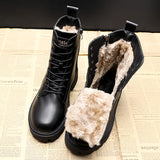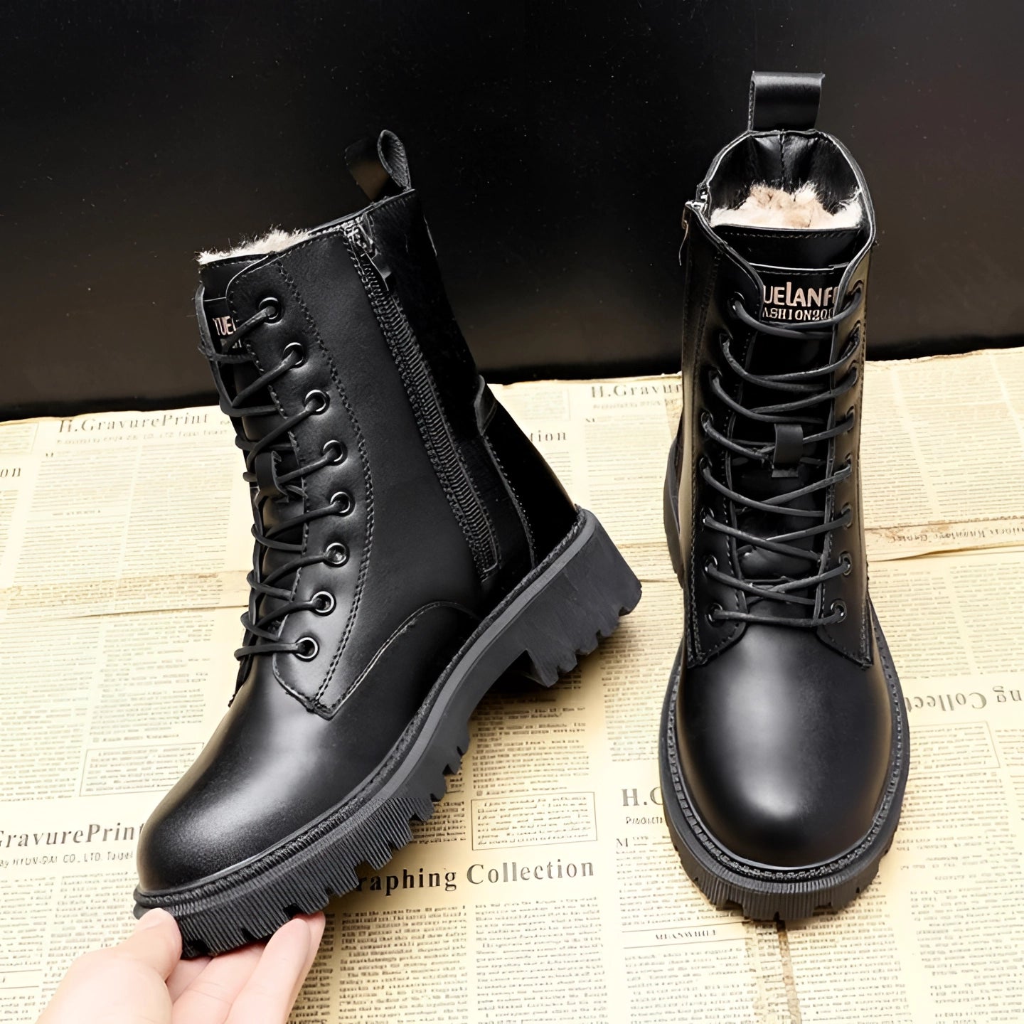 Black Leather Fur-Lined Insulated Lace-Up Winter Boots