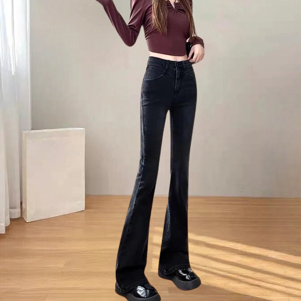 | 1 - Chic Black Velvet Flare Jeans - High Waist Winter Fashion | |