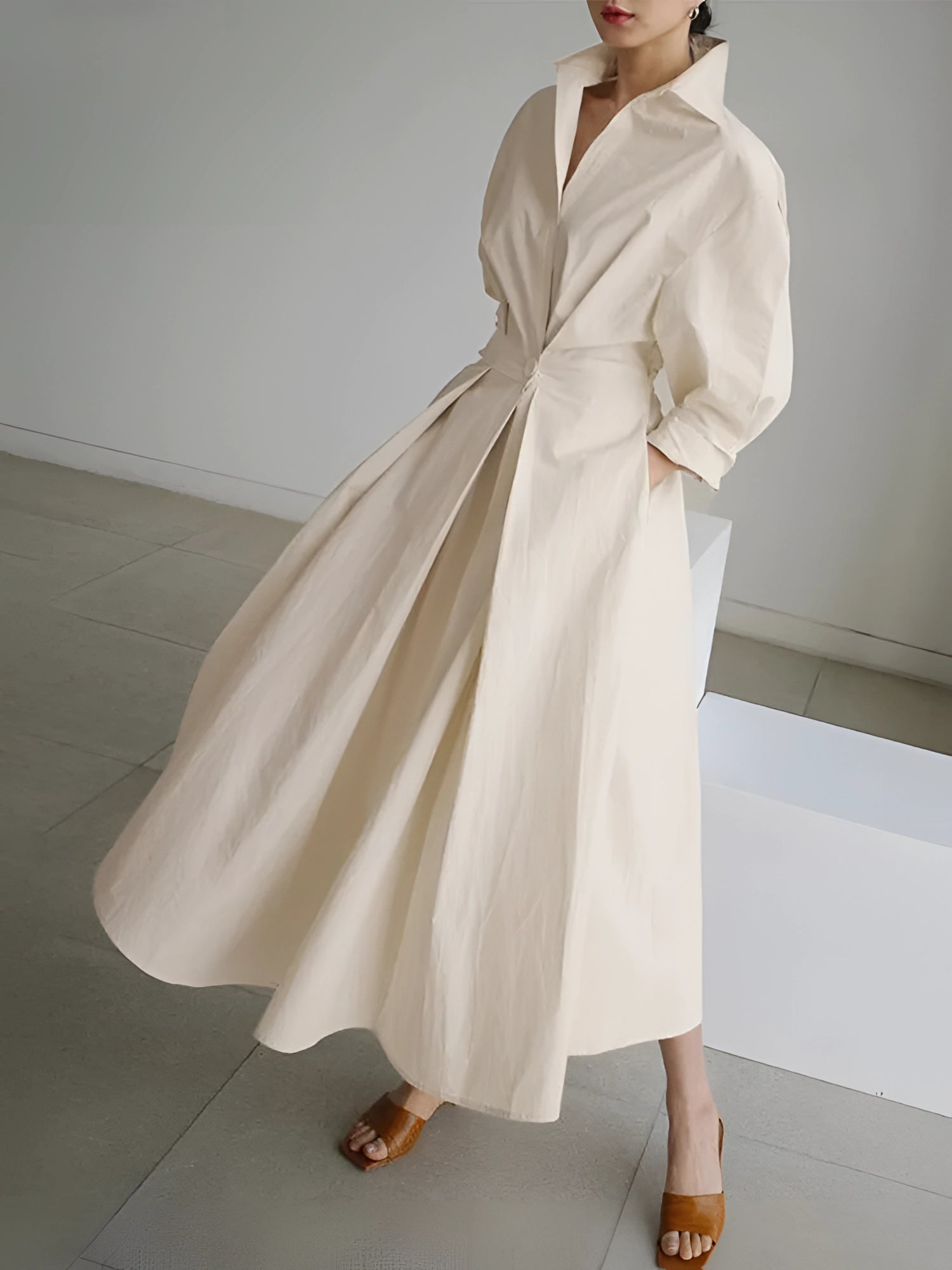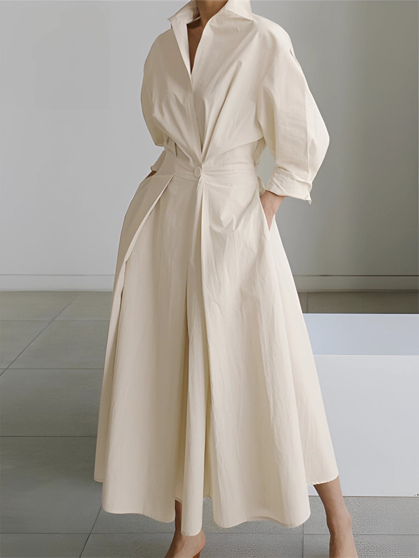 1 - Cream Luxury Designer Oversized Trench Coat with Wide Collar
