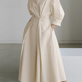 Cream Luxury Designer Oversized Trench Coat with Wide Collar