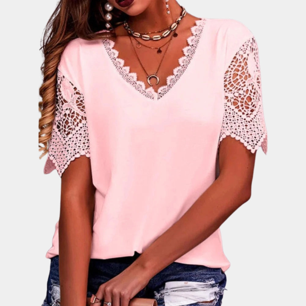 | 1 - Lace Sleeve V-Neck Crochet Blouse - Bohemian Summer Fashion Top | |