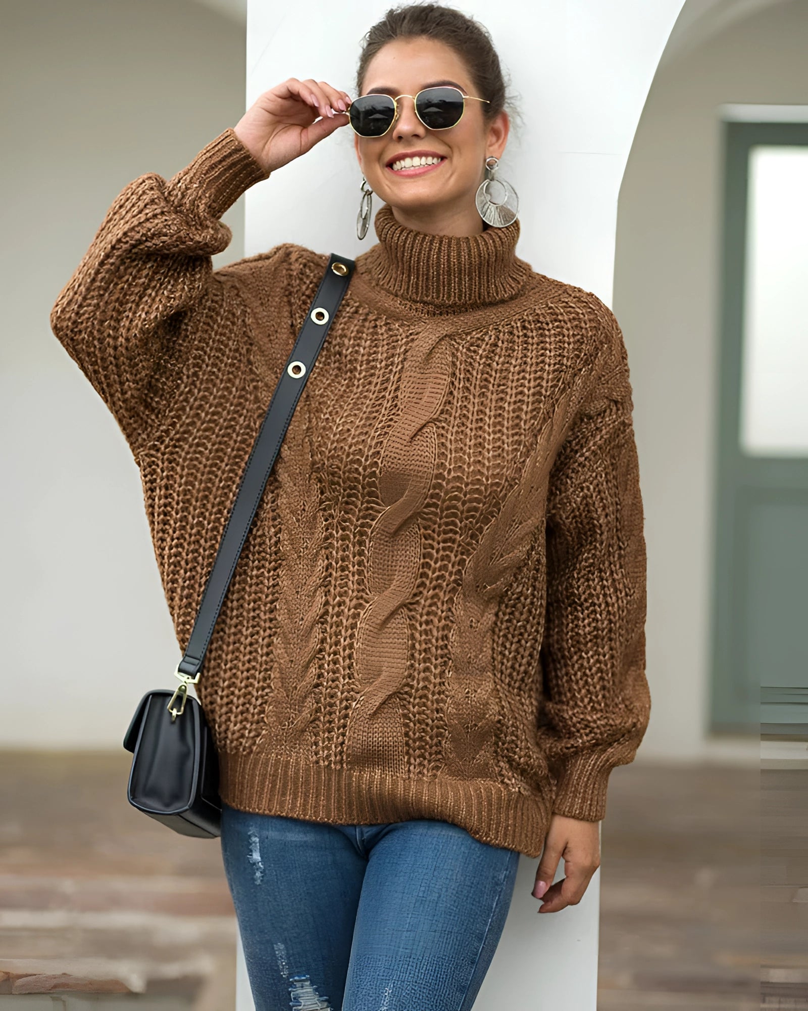 The Mustard Yellow Cable Knit Turtleneck Sweater is a quintessential piece for your autumn wardrobe, offering both style and warmth. This chunky sweater is designed with a bold cable knit pattern that enhances its vintage, casual-chic appeal. Its oversized silhouette, complete with a turtleneck and twisted ribbed hem, ensures a comfortable fit that is both wide and cropped, making it a versatile addition to your seasonal outfits. Available in a range of colors including Yellow, Brown, Gray, Coffee, and Nero, and sizes from S to XL, this sweater caters to diverse style preferences and body types. Crafted from high-quality fabric, the sweater promises durability and a luxurious feel, embodying a beautiful, feminine, and elegant design that is sure to garner compliments. The simplicity of its style allows it to be worn year-round, seamlessly integrating with various seasonal looks. Additionally, the sweater comes with the benefit of free shipping, making it an even more attractive purchase. Whether you're dressing up for a casual day out or layering for warmth, this cable knit turtleneck sweater is a must-have for those who appreciate both fashion and function.