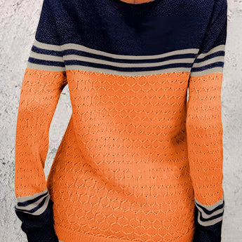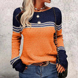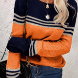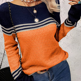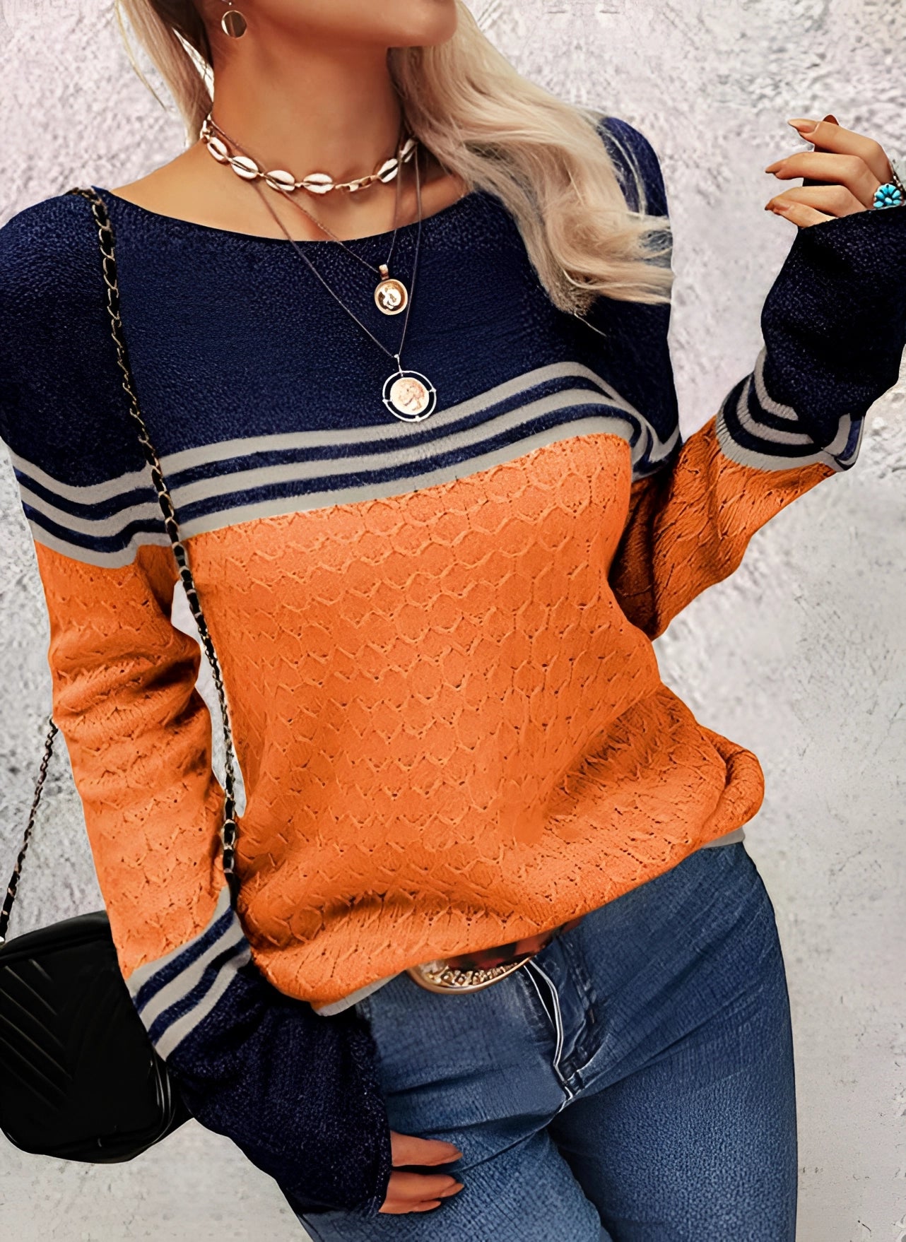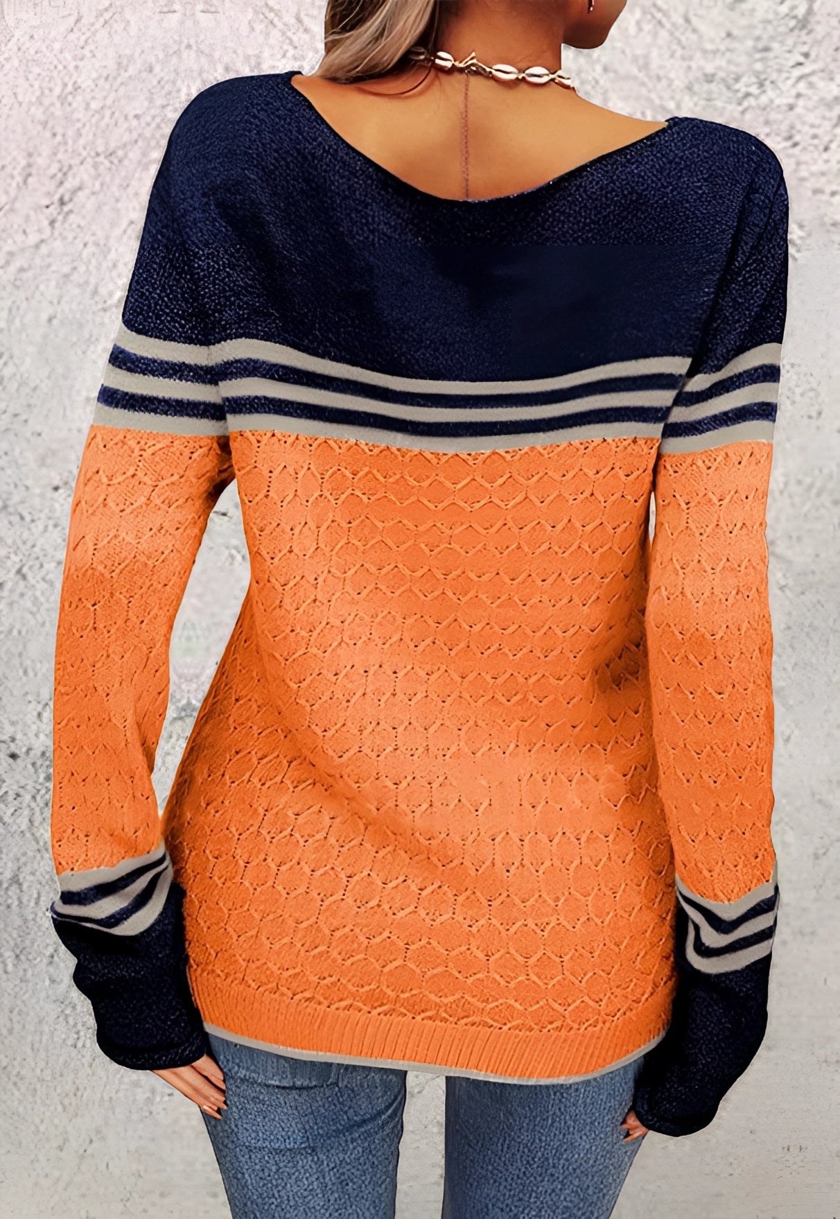 | 1 - Navy Blue & Orange Striped Sweater - Chic Fall Knitwear | |