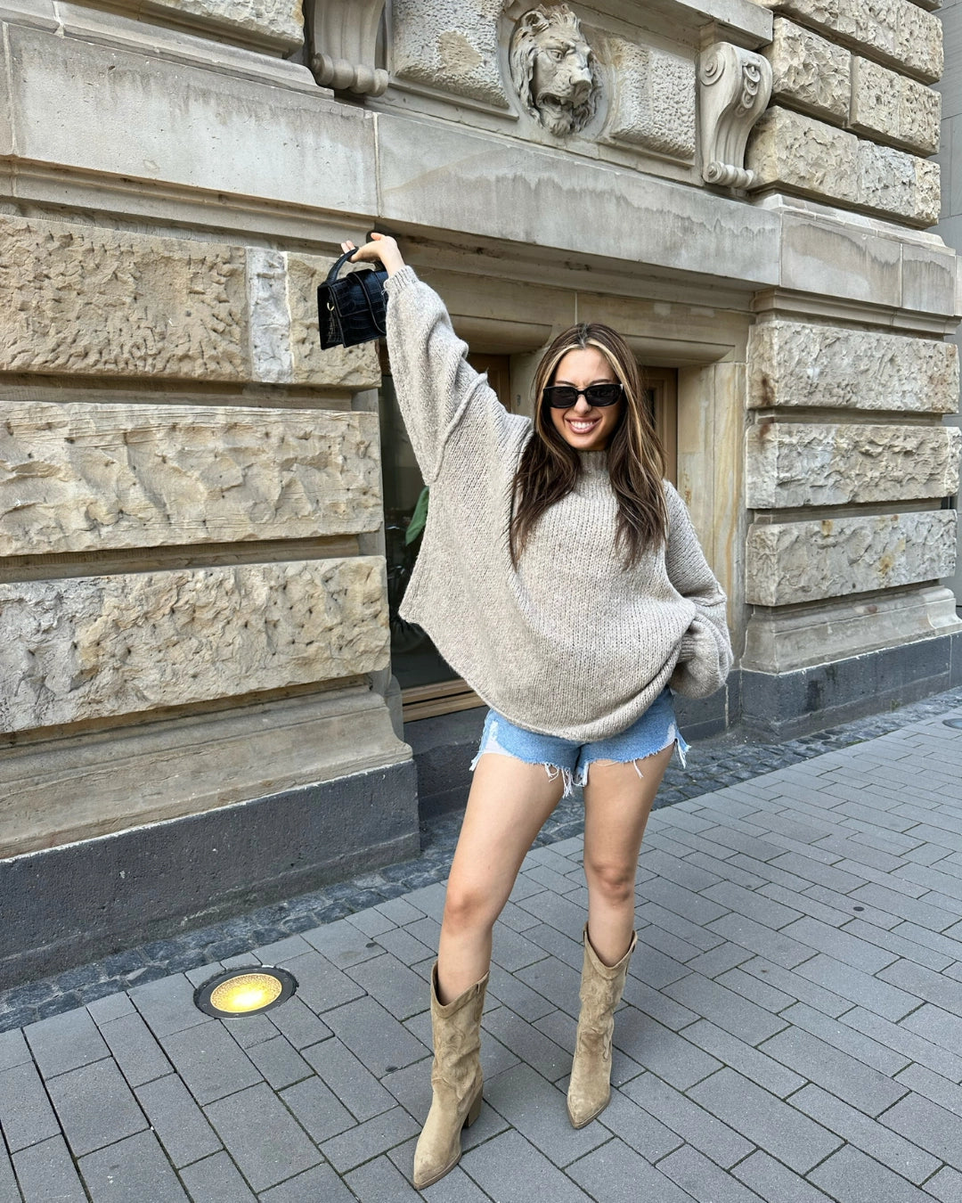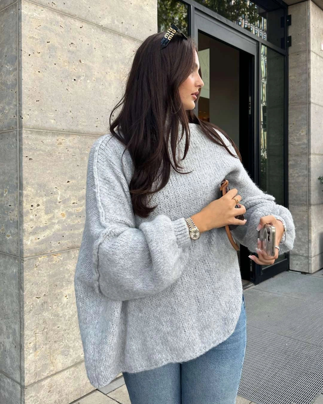 The Oversized Beige Chunky Knit Turtleneck Sweater is a quintessential piece for anyone looking to combine warmth and style during the colder months. This sweater is designed with a trendy oversized fit, making it not only comfortable but also a fashion-forward choice for winter. Its generous cut ensures a relaxed fit, perfect for layering over other garments, while the soft knit material provides a cozy and warm wearing experience. This sweater is a must-have addition to your winter wardrobe, offering both functionality and style. One of the main unique selling points of this sweater is its trendy oversized design, which gives your outfit a modern and laid-back look. The loose fit is not only comfortable but also adds a touch of contemporary style to your ensemble. Another highlight is the soft material; crafted from high-quality knit, it ensures a snug and warm feel, making it ideal for chilly days. Lastly, the sweater's versatility is unmatched. It can be effortlessly paired with jeans or leggings, making it suitable for everyday wear. Available in a chic gray color and a convenient one-size option, this sweater is designed to fit a variety of body types, ensuring that everyone can enjoy its stylish and cozy benefits. Whether you're heading out for a casual day or staying in for a cozy evening, this oversized knit turtleneck sweater is the perfect choice to keep you warm and stylish.