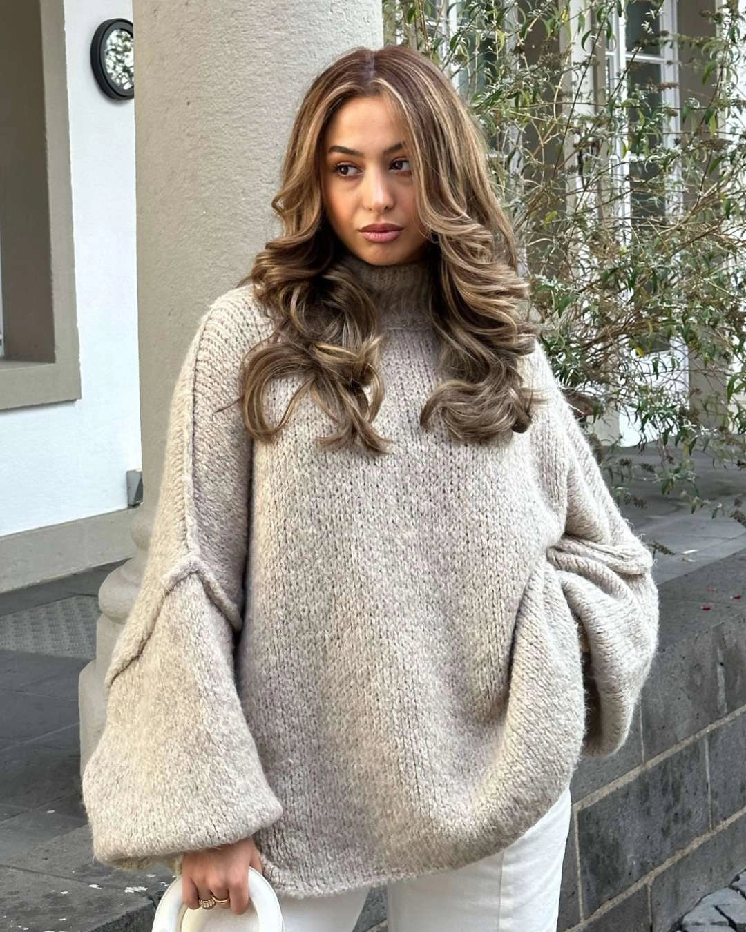 | 1 - Oversized Beige Chunky Knit Turtleneck Sweater - Cozy Winter Fashion | |