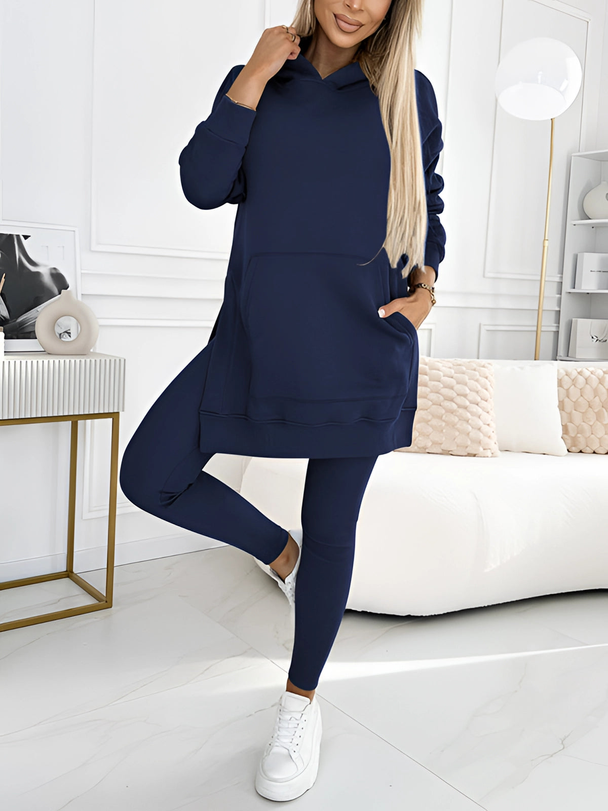 The Oversized Grey Hoodie & Leggings Set is a trendy urban streetwear ensemble that perfectly marries comfort with a fashionable edge. This two-piece set includes a chic hoodie paired with sleek, lined leggings, making it an ideal choice for both casual outings and relaxing at home. Available in a variety of colors including Blue, Black, Pink, Coffee, Gray, Green, and Marine blue, and sizes ranging from S to 3XL, this set offers versatility and a flattering fit for every body type. The standout features of this set include its chic appearance, which elevates your casual look with a modern hoodie and slim leggings, and its exceptional comfort, crafted from soft materials designed for everyday wear. Additionally, the multifunctional fashion of this set makes it suitable for a range of activities, from running errands to enjoying a cozy evening at home, seamlessly transitioning from day to night. The set is easy to care for, ensuring maintenance is a breeze. Embrace your individuality with this stylish choice that is sure to become a must-have in your wardrobe, offering a flattering fit that accentuates your figure while providing unparalleled comfort. Whether you're stepping out or staying in, this set is the perfect blend of style and comfort, making it a versatile addition to any fashion-forward wardrobe.