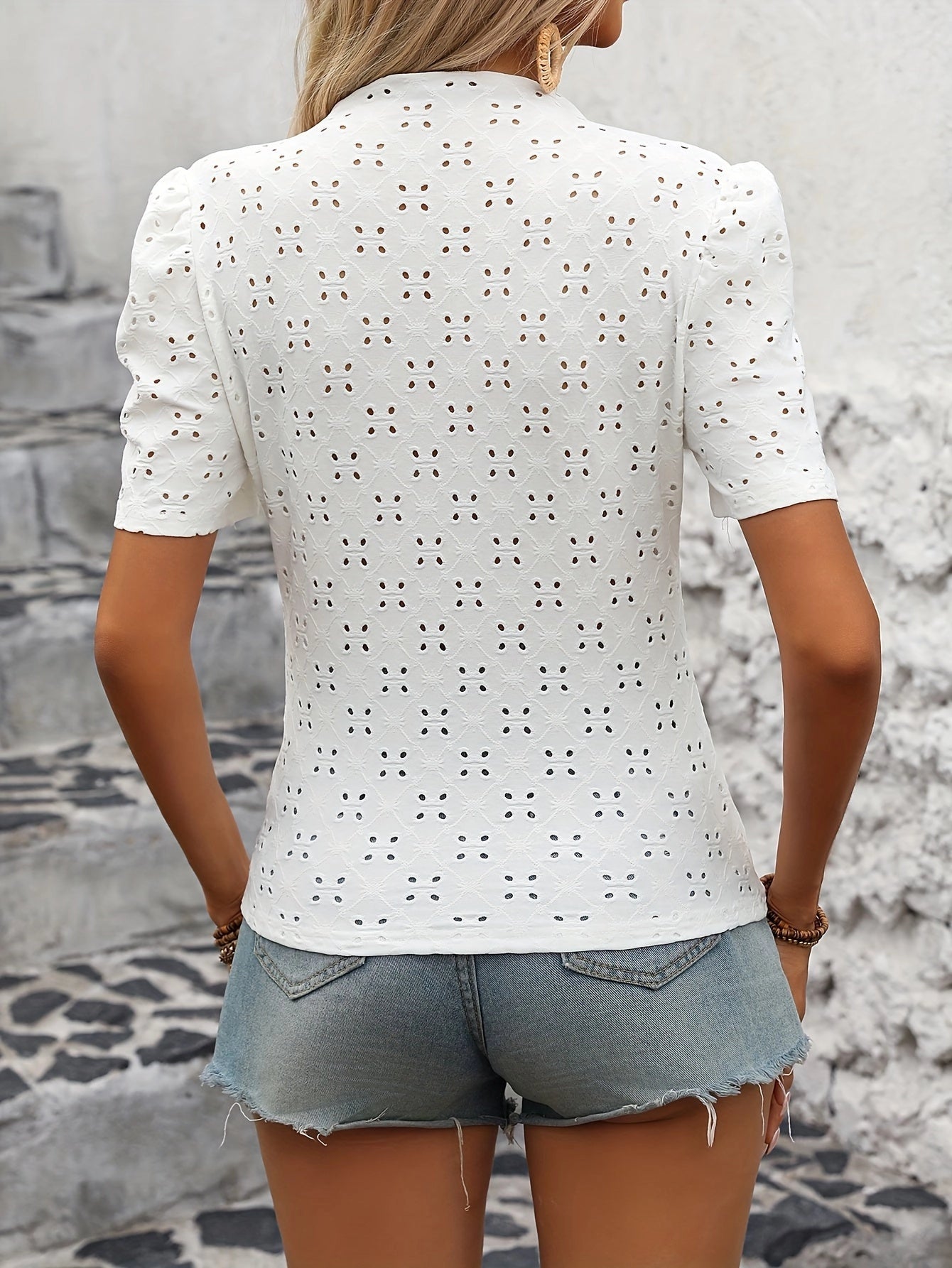 Polka Dot White Blouse Eva - Trendy Summer Casual Chic Fashion