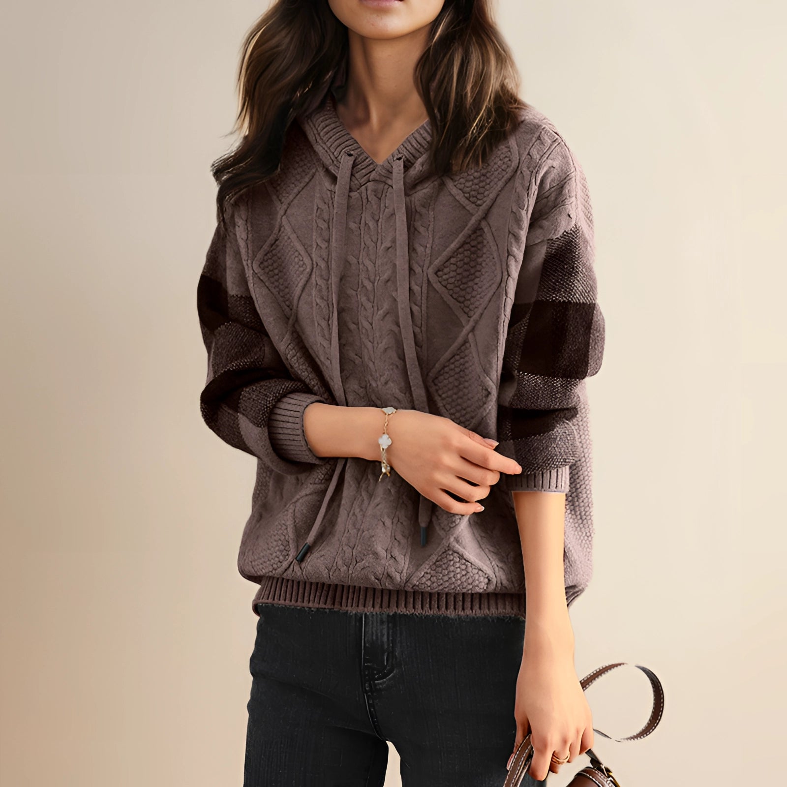 The Red Cable Knit Sweater - Luxurious Textured Pullover is a must-have addition to any wardrobe, offering a blend of style, comfort, and versatility. Available in three distinct colors - Brown Ash, Beige Avocado, and Hatched Red - this sweater caters to a variety of personal styles and preferences. The sweater is also available in a wide range of sizes, from XS to XXL, ensuring a perfect fit for everyone. This luxurious pullover features a chic cable knit design that adds texture and visual interest, making it a standout piece in any outfit. Its cozy and comfortable fabric makes it ideal for everyday wear, whether you're running errands, relaxing at home, or meeting friends for coffee. The sweater's versatility is one of its key selling points, as it can be easily layered during cooler seasons, making it suitable for various occasions and weather conditions. The Red Cable Knit Sweater effortlessly combines comfort and style, making it a practical yet fashionable choice for those looking to stay trendy and warm. Its unique design and high-quality materials ensure that it not only looks great but also provides the warmth and comfort needed during the colder months. This sweater is a perfect example of how fashion-forward design can meet everyday practicality, making it an essential piece for anyone looking to enhance their casual wardrobe.
