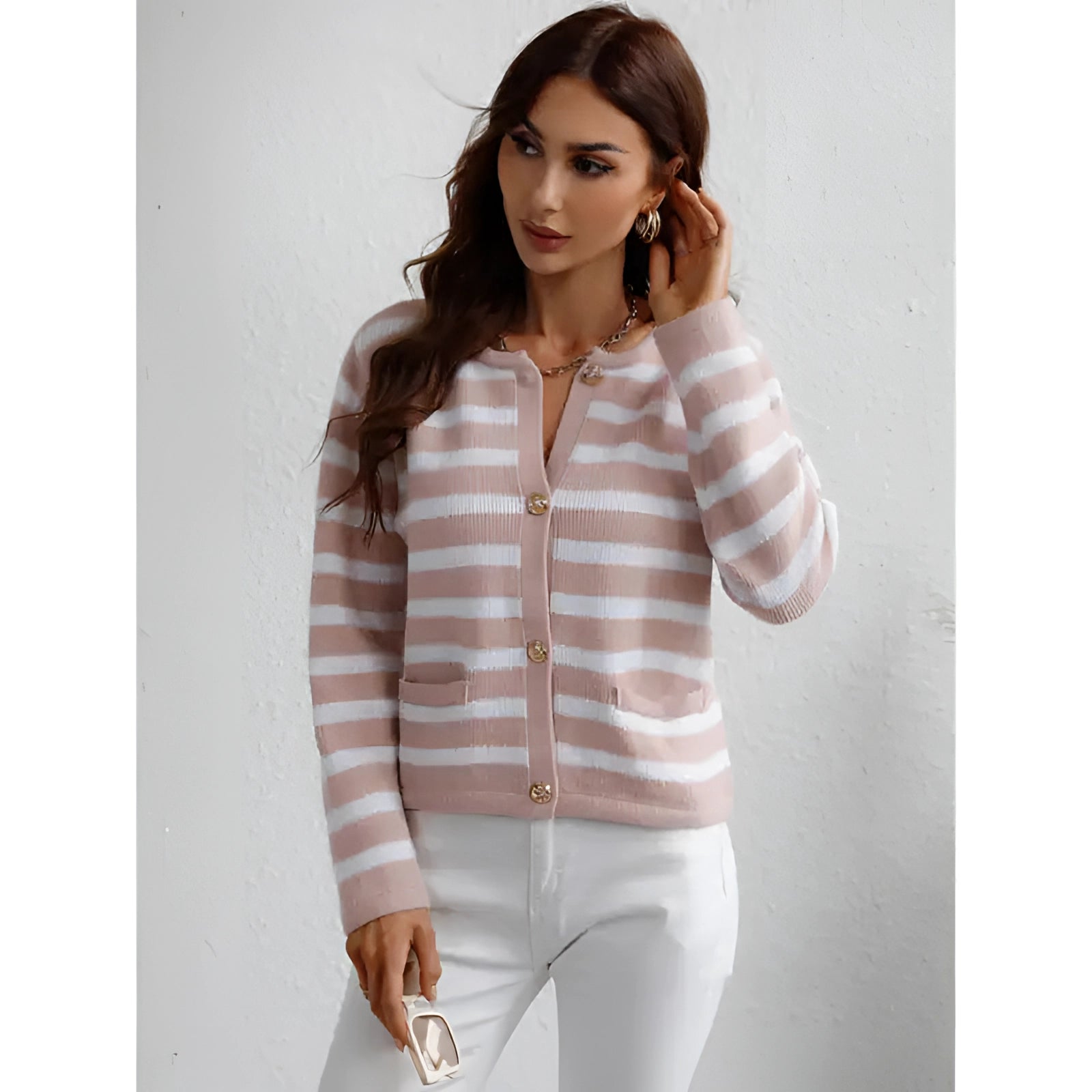 | 1 - Striped Blue & White Knit Cardigan - Casual Chic Button-Up Sweater | |