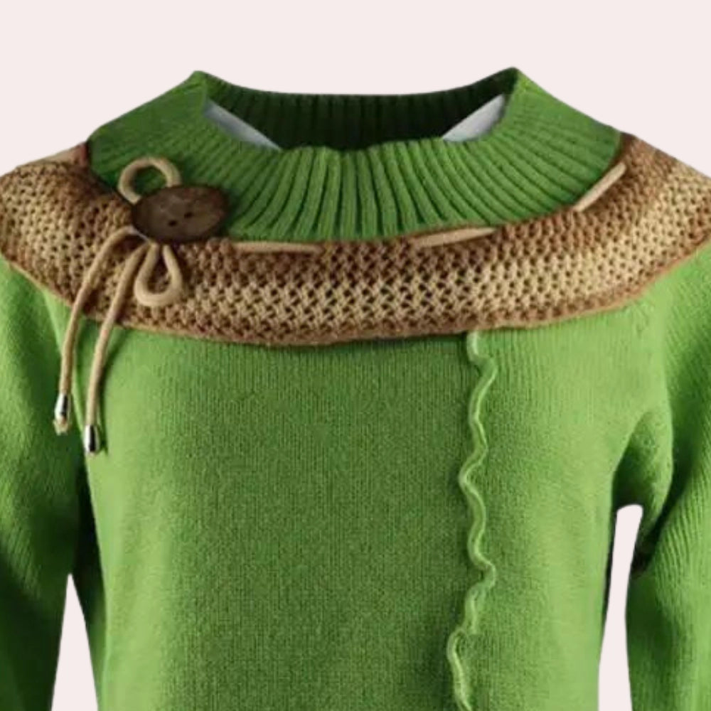 The Two-Tone Green-Brown Asymmetrical Ruffled Sweater with Toggle, also known as the Frankie Elegante knitted women's sweater, is the perfect companion for the autumn and winter seasons. This distinctive and expressive garment combines a feminine, tailored cut with a stylish round neckline, adorned with a decorative toggle. Crafted from high-quality acrylic fibers, it offers both warmth and durability, ensuring comfort and a unique style. The sweater's expressiveness is highlighted by its unique design, which complements your individual character. Its tailored fit provides a flattering silhouette, making it ideal for pairing with jeans or corduroy pants. The light asymmetrical design adds versatility, allowing it to seamlessly integrate into various outfits. Available in a wide range of colors including Khaki, Green, Mint green, Red, and Blue, and sizes from XS to XL, this sweater offers ample choice to suit different preferences. The combination of high-quality materials and a unique design makes this sweater a standout piece in any wardrobe, perfect for those looking to express their individuality while staying warm and stylish during the colder months.