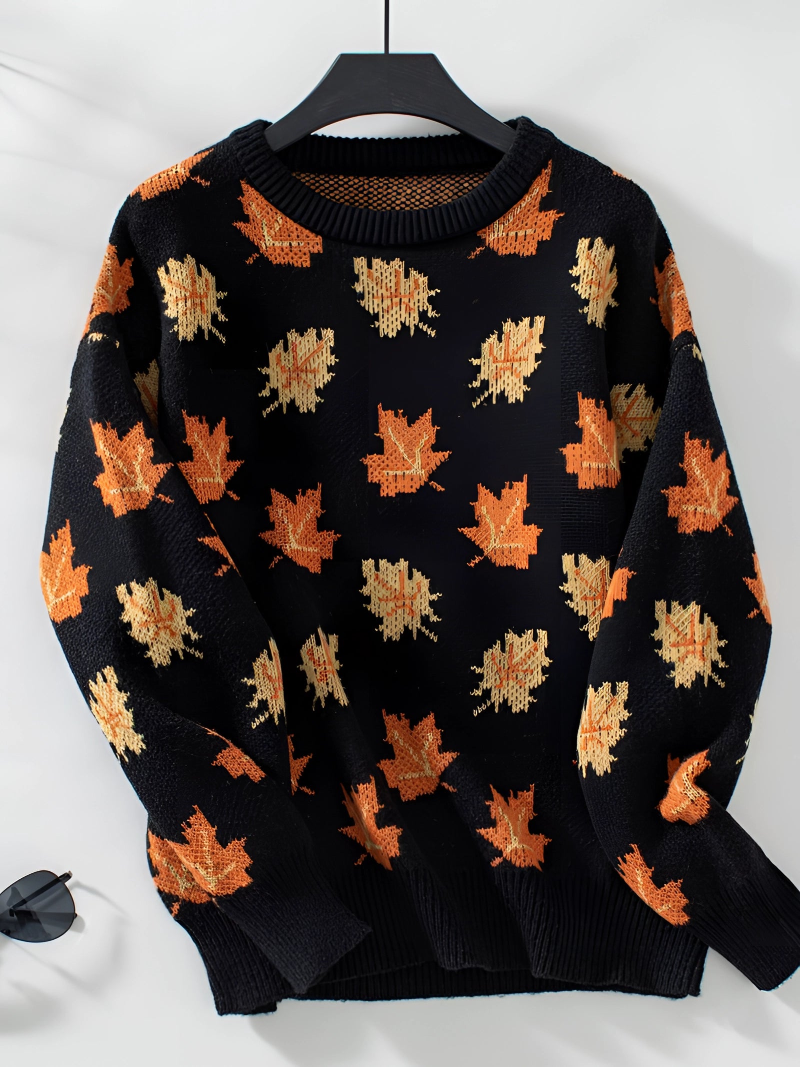 1 - Women's Autumn Leaf Pattern Crew Neck Sweater - Cozy Fall Fashion |