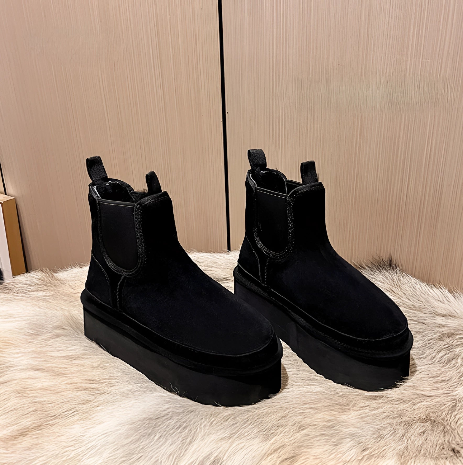1 - Women's Black Suede Platform Chelsea Ankle Boots - Winter Slip-On |