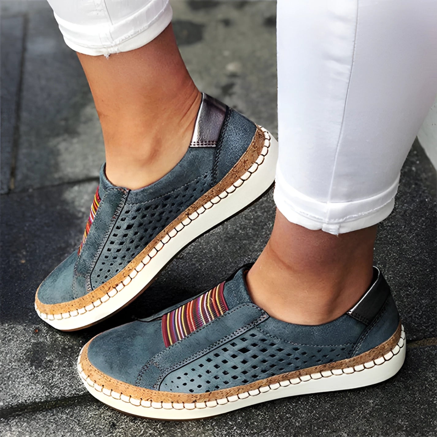The Women's Blue Suede Slip-On Sneakers are the epitome of comfort and style, designed specifically for women who value both aesthetics and functionality in their footwear. These sneakers, available in a variety of colors including Blue, White, Black, Green, and Red, cater to a wide range of personal styles and preferences. With sizes ranging from 35 to 43, they ensure a perfect fit for every foot. The Hilda Orthopedic Comfort Shoes for Women are crafted to provide exceptional support, making them ideal for daily wear. One of the standout features of these sneakers is their orthopedic support, which is meticulously designed to alleviate foot pain and provide all-day comfort. This makes them an excellent choice for those who spend long hours on their feet. Additionally, the sneakers are made from high-quality, breathable materials that ensure a pleasant foot climate, preventing discomfort and sweat accumulation. The stylish design of these shoes makes them a versatile addition to any casual wardrobe, effortlessly complementing a variety of outfits. Whether you're running errands or enjoying a leisurely walk, these sneakers offer the perfect blend of fashion and function. The combination of orthopedic support, breathable materials, and fashionable design makes the Women's Blue Suede Slip-On Sneakers a must-have for any woman seeking comfort without compromising on style.