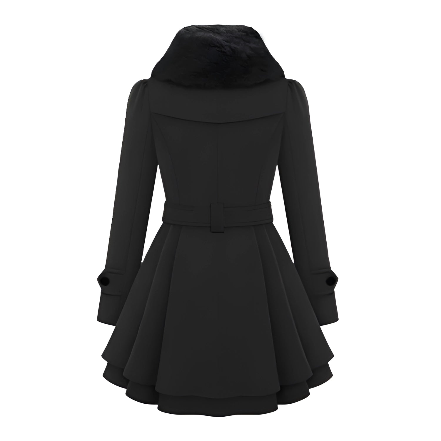 1 - Women's Camel Fur-Collar Skater Coat - Belted Flare Winter Fashion |