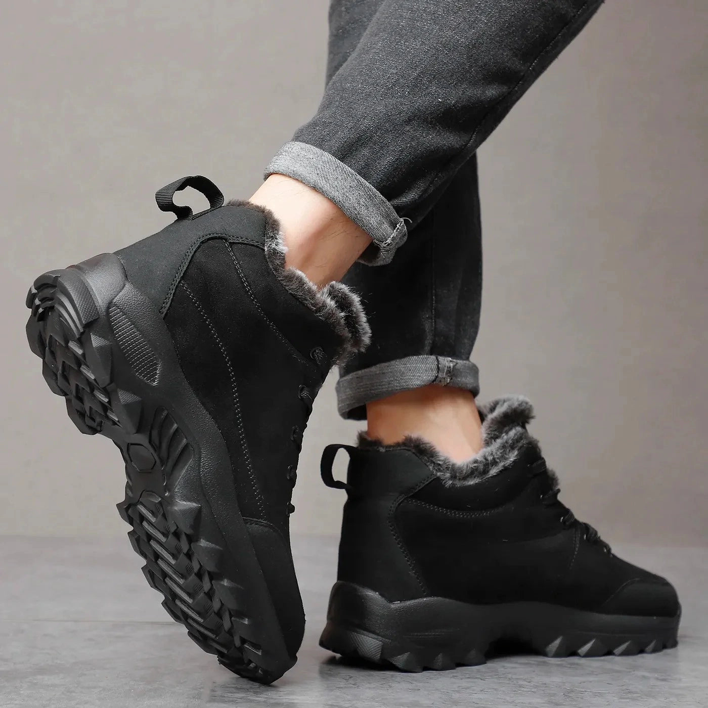 The Women's Fur-Lined Insulated Anti-Slip Winter Boots are the ultimate choice for those seeking comfort, style, and functionality in harsh winter conditions. Available in two classic colors, Blue and Black, these boots cater to a wide range of preferences and are offered in an extensive size range from 36 to 46, ensuring a perfect fit for everyone. These boots are designed to conquer any trail with confidence, thanks to their innovative DopeStride™ technology. The first standout feature is the orthopedically designed footbed, which provides superior arch support and cushioning, significantly reducing foot fatigue and the risk of injuries. This makes them an excellent choice for long hikes or daily wear in cold weather. Secondly, the boots boast a durable construction that is built to withstand the elements, featuring a robust design and a long-lasting sole that promises enduring performance. This durability is complemented by a water-resistant exterior, ensuring your feet remain dry and comfortable even in wet conditions, making them ideal for any weather. Lastly, the breathable lining of these boots ensures that your feet stay warm and dry, preventing sweat and odor buildup, which is crucial for maintaining comfort during extended wear. The sleek design of the DopeStride™ winter boots makes them versatile enough for various outdoor activities, making them a valuable investment for any adventurer. With these boots, you can tackle any winter challenge with ease and style.