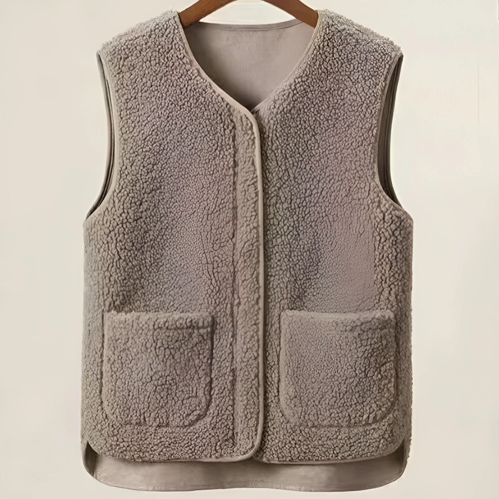 The Women's Fuzzy Shearling Zip-Up Vest, known as the Caroli Fleece Vest, is an essential addition to any winter wardrobe, offering both style and functionality. Available in a range of colors including Beige, Light Brown, Dark Brown, and Pink, this vest caters to diverse fashion preferences. It is designed to accommodate a variety of body types with sizes ranging from 3XL to 6XL, ensuring a comfortable fit for everyone. The Caroli Fleece Vest is crafted from soft, lightweight fleece material, providing warmth without the bulk, making it an ideal choice for transitional weather and cold days. Its modern, minimalist design allows for versatile styling, easily pairing with casual outfits or layering over a sweater or under a jacket. The vest features a practical full-length zipper, facilitating easy wear and removal, enhancing its convenience for everyday use. The Caroli Fleece Vest stands out with its three main unique selling points: its feather-light design that offers warmth, its versatility in layering and outfit combinations, and the practicality of its zipper closure. This vest is not just a piece of clothing but a functional fashion statement that seamlessly blends comfort with style, making it a must-have for those who value both aesthetics and practicality in their winter fashion choices.