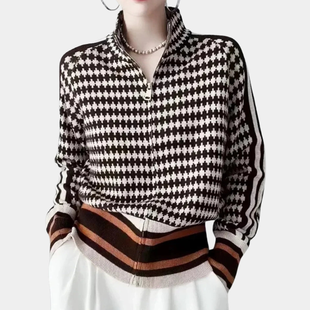 1 - Women's Houndstooth Turtleneck Sweater, Black & White Knitwear |