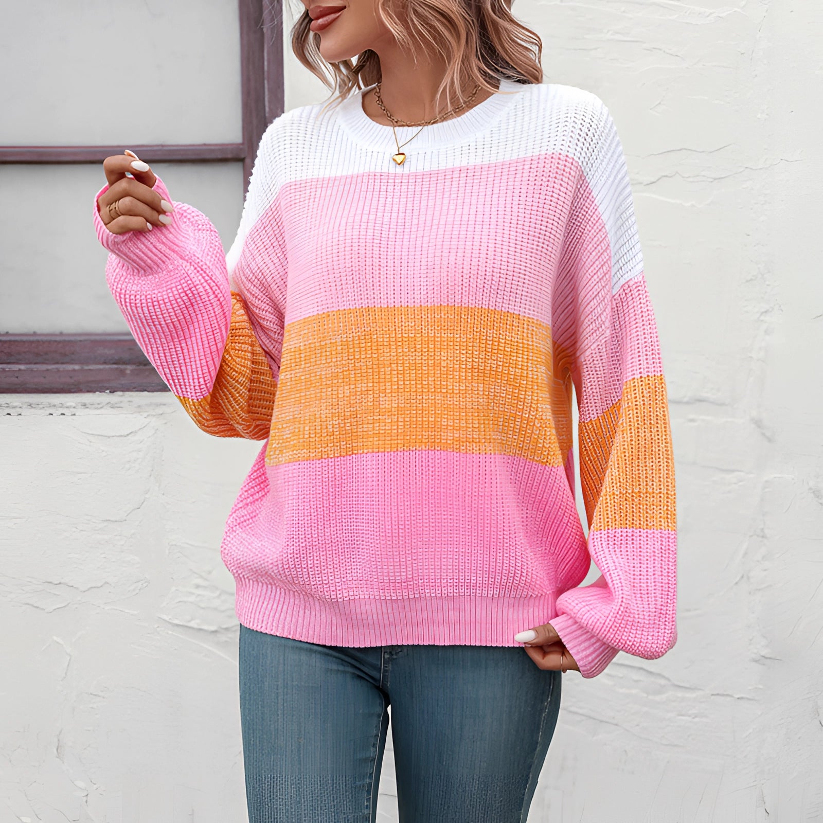 The Women's Oversized Pastel Striped Knit Sweater in Cozy Aqua Purple Pullover is a standout piece in any wardrobe, offering a blend of comfort and style. This trendy oversized sweater is characterized by its modern, loose fit and broad pastel stripes, which create a fresh and stylish appearance. The wide sleeves add an extra layer of comfort and contribute to a casual, laid-back look, making it an ideal choice for relaxed leisure outfits. Available in three beautiful color options—Blue, Rose, and Dark Blue—this sweater caters to a variety of personal styles. Additionally, it comes in a range of sizes from S to XL, ensuring a perfect fit for everyone. The sweater's versatility allows it to be beautifully paired with jeans or skirts, making it a perfect addition to your daily routine or for cozy days at home. Its unique selling points include the oversized fit that provides both comfort and a fashionable edge, the wide sleeves that enhance its casual appeal, and the pastel stripes that offer a modern twist to a classic knit sweater. This piece is not just a garment but a statement of style and comfort, perfect for those who appreciate a blend of modern design and everyday practicality.