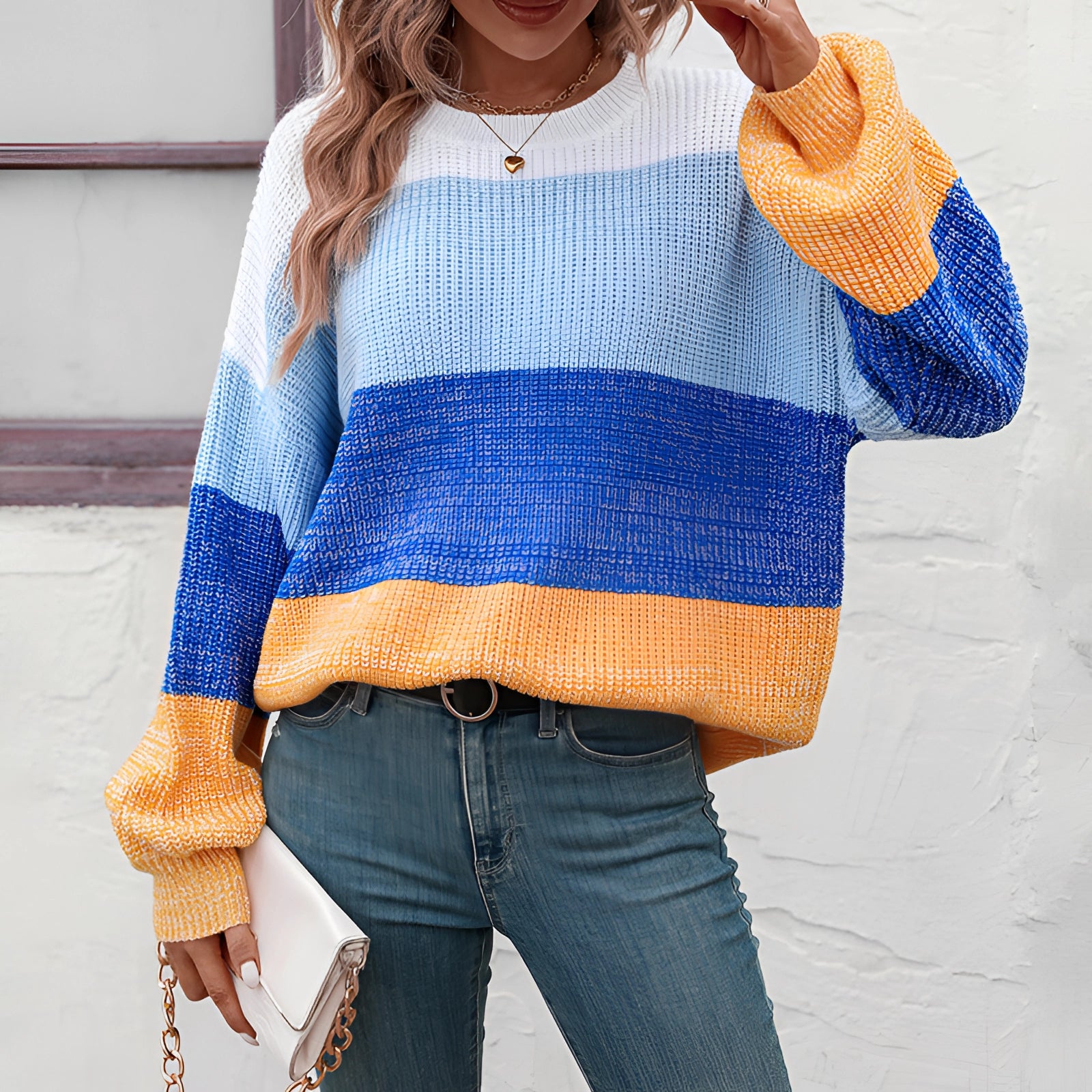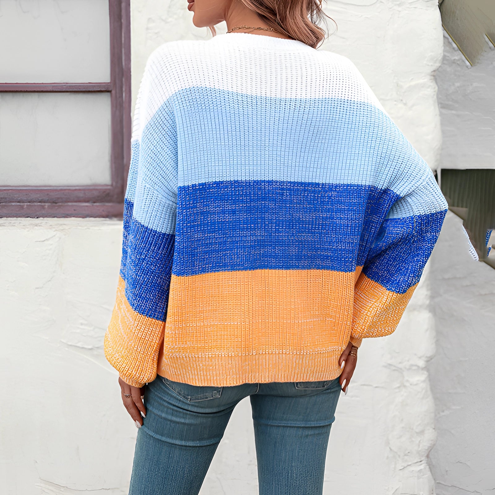 1 - Women's Oversized Pastel Striped Knit Sweater - Cozy Aqua Purple Pullover |