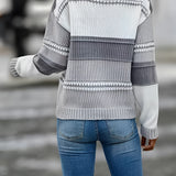 1 - Women's Striped V-Neck Lightweight Gray & White Sweater |